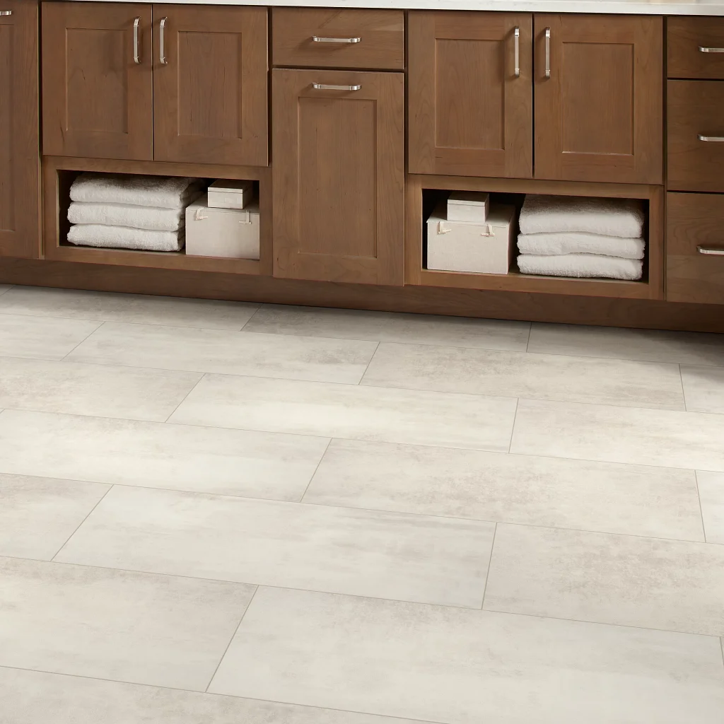 Paragon Tile Plus features 100% waterproof 12” x 24” tiles built to endure stains, scuffs, spills and dents from high traffic and extreme conditions. Plus, it save you time and money on easy installation with no messy grout, adhesives or subfloor prep—simply install and live on in the same day. All Paragon Tile Plus styles come with Scuf Resist Platinum finish and attached Soft Silence acoustical pad.